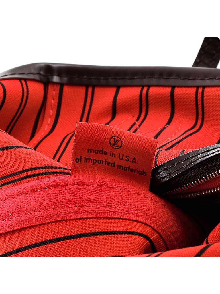- Exterior Color: brown | Interior Color: red | Exterior Material: Canvas Coated | Interior Material: Fabric | Hardware Color: Gold | Accessories: Dust BagStrap Length: 8.5 | Item No: 239698/1 | CLAIRE CODE: HB.LV.NNM.DR.MM
