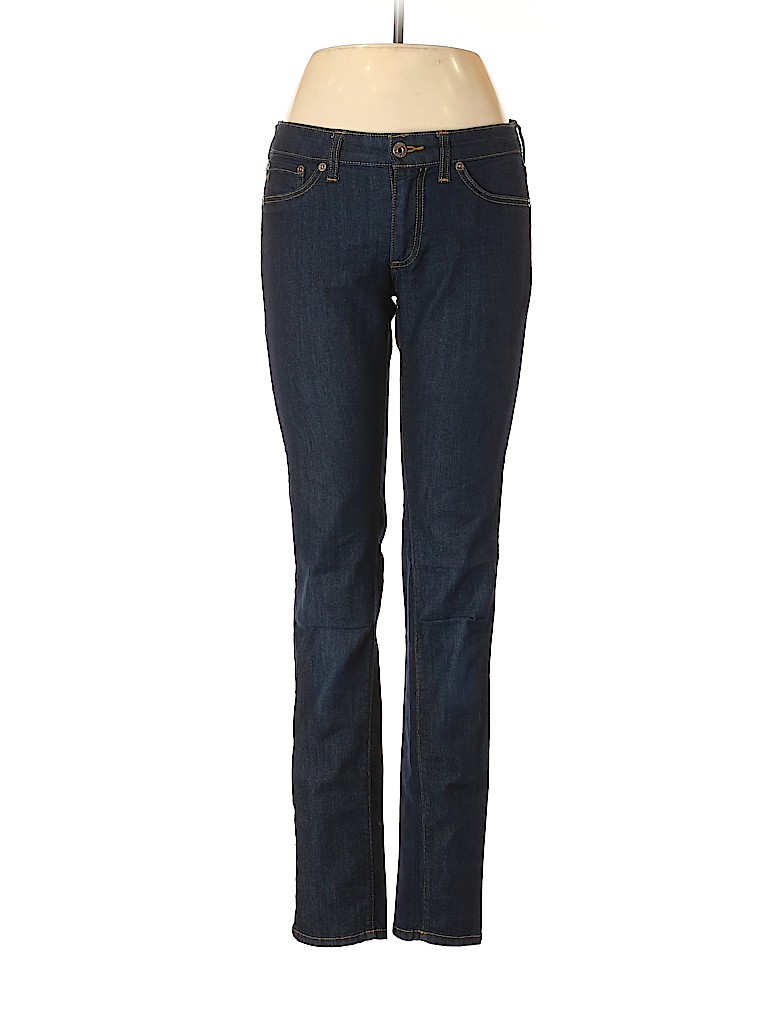 - Blue, low rise waist