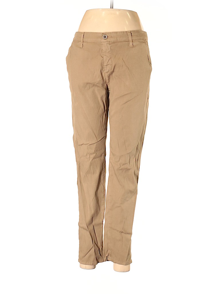 - Tan, mid rise waist