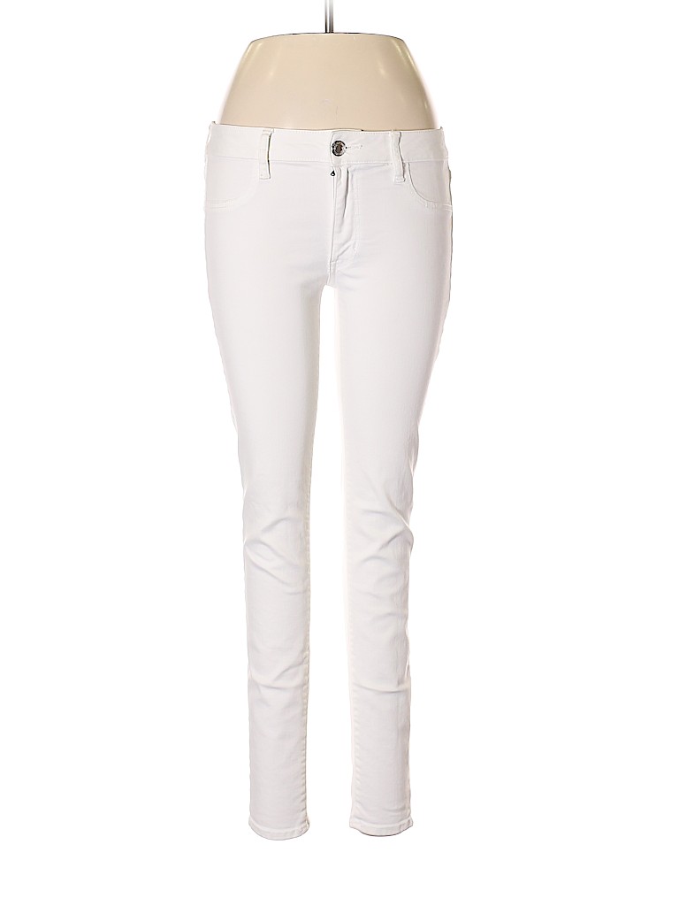 - White, mid rise waist