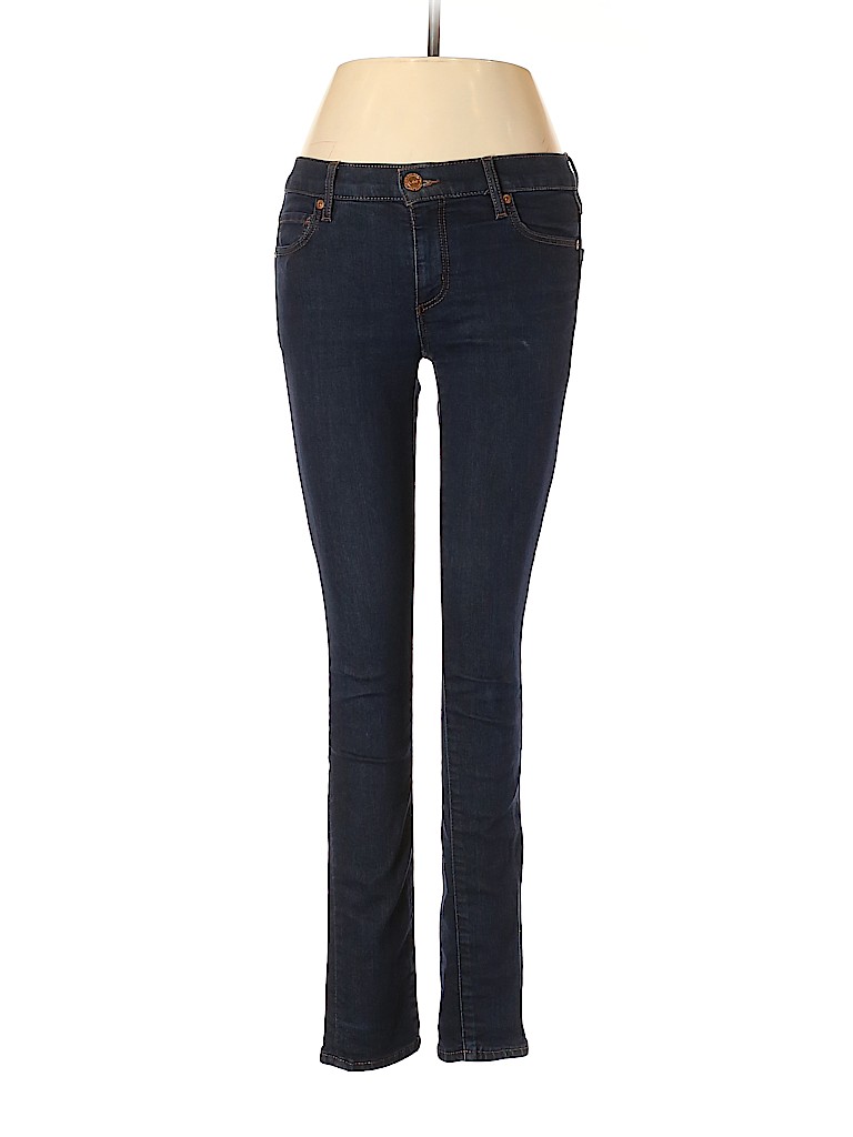 - Blue, low rise waist