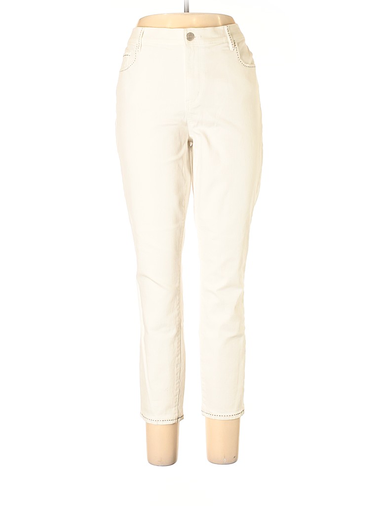 - White, mid rise waist