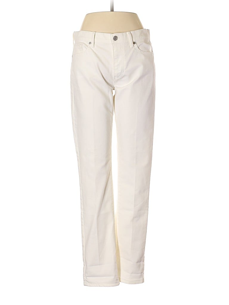 - White, mid rise waist