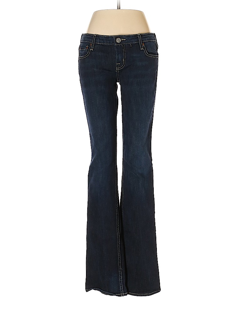 - Blue, low rise waist