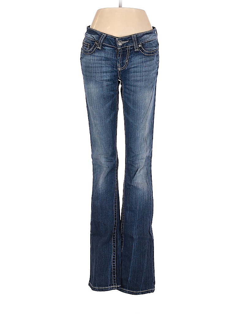- Blue, low rise waist