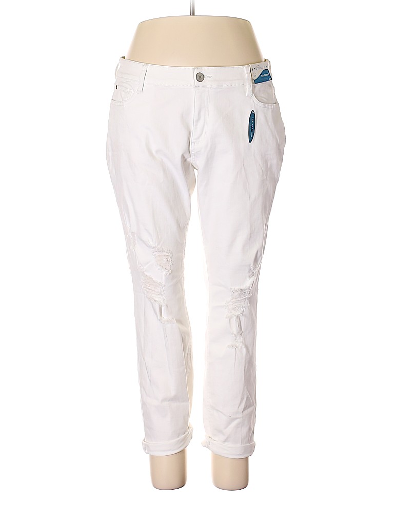 - White, mid rise waist