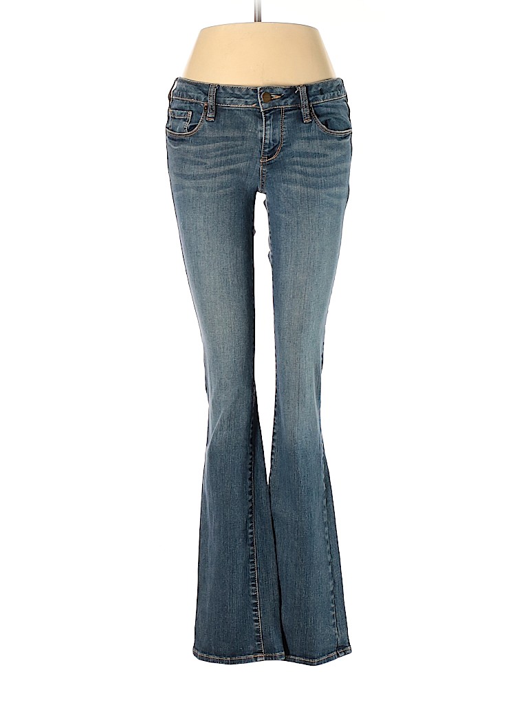 - Blue, low rise waist