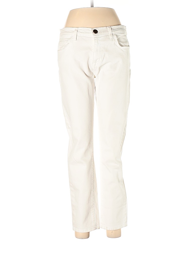 - White, mid rise waist