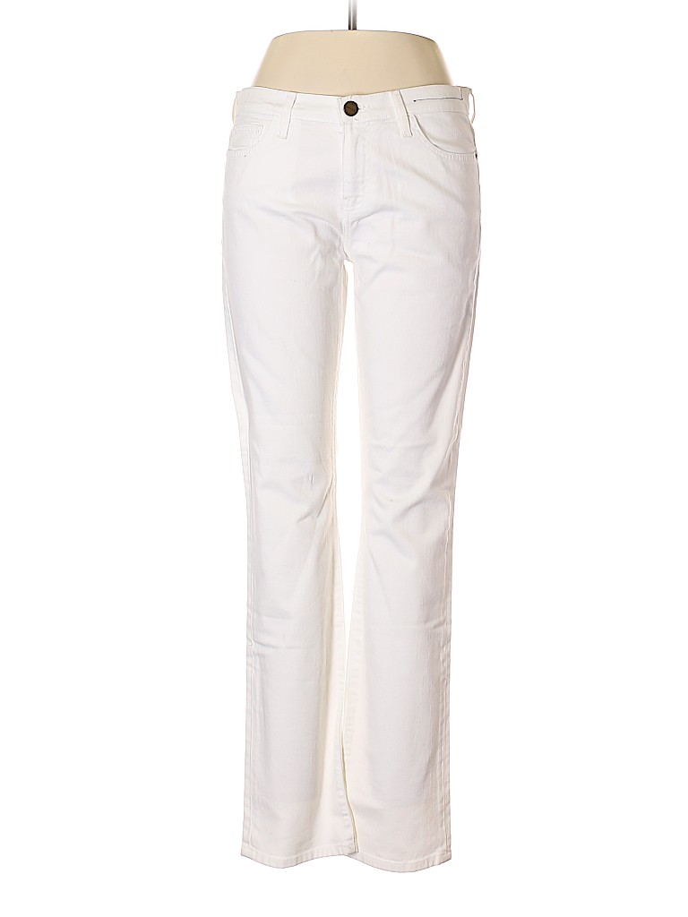 - White, mid rise waist