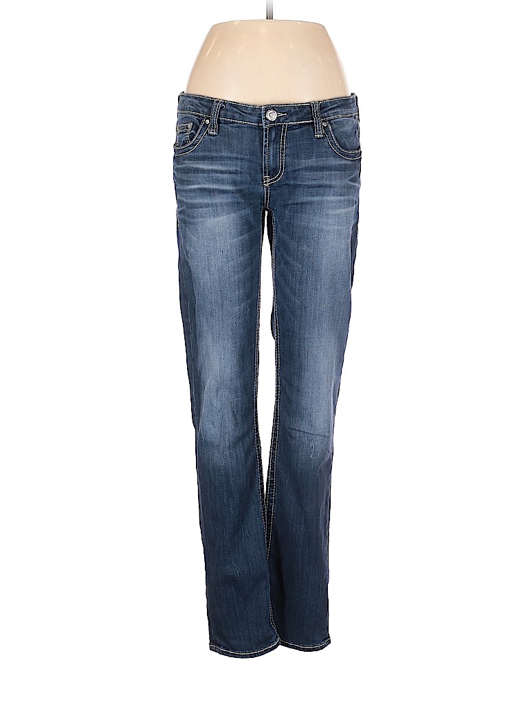 - Blue, low rise waist