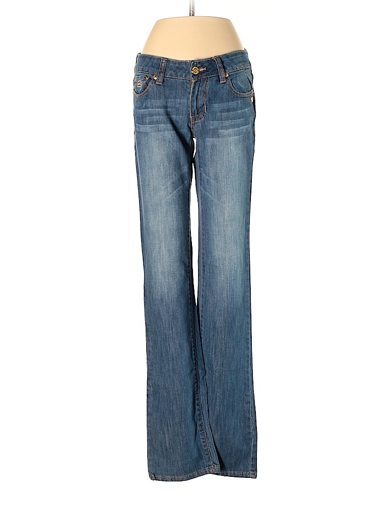 - Blue, low rise waist