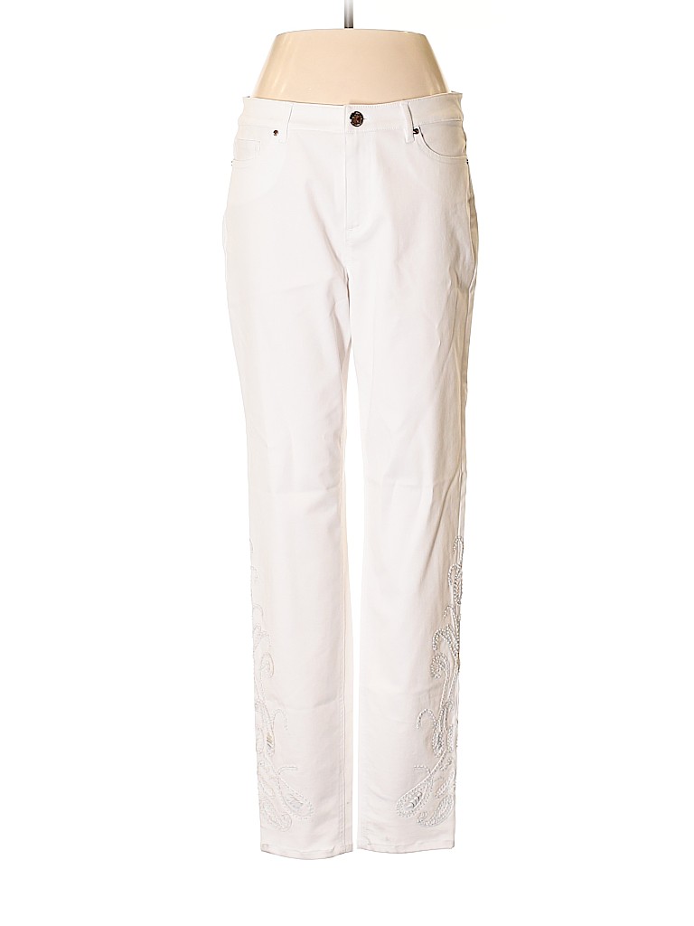 - White, mid rise waist