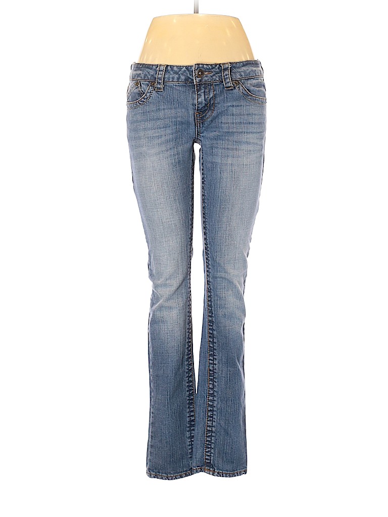 - Blue, low rise waist