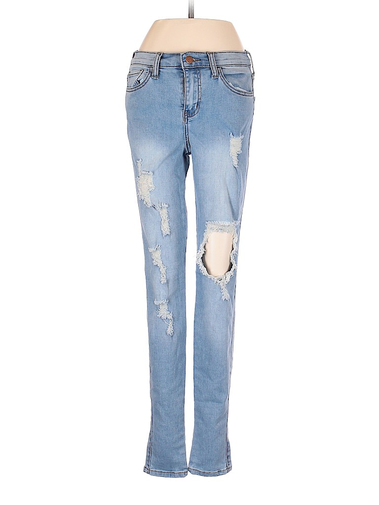 - Blue, low rise waist
