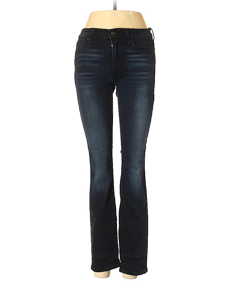 - Blue, low rise waist