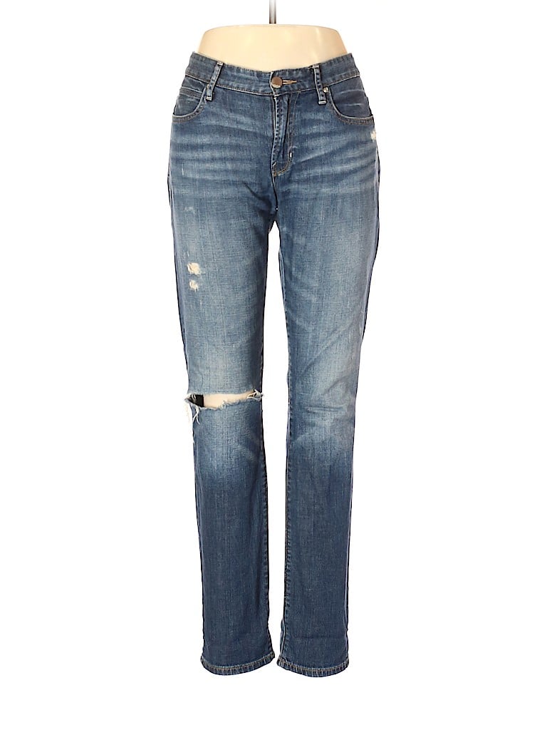 - Blue, mid rise waist