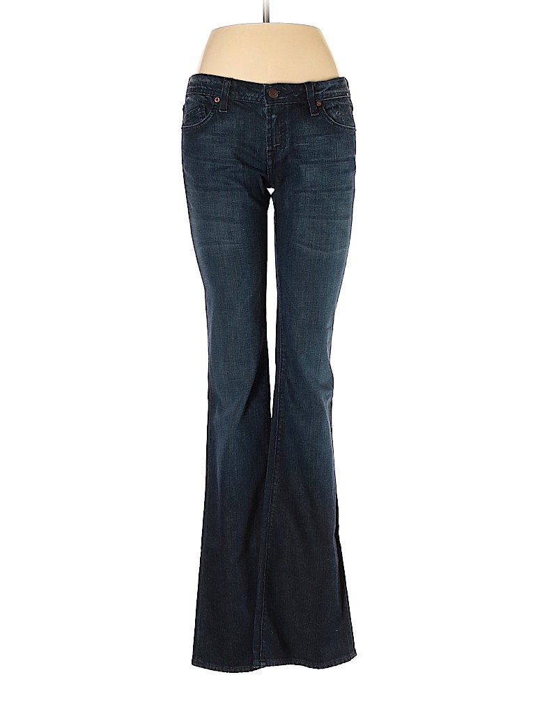 - Blue, low rise waist