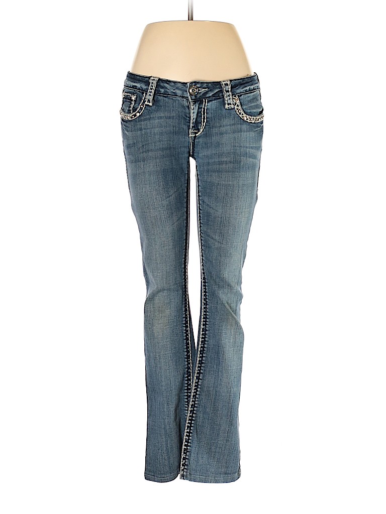 - Blue, low rise waist