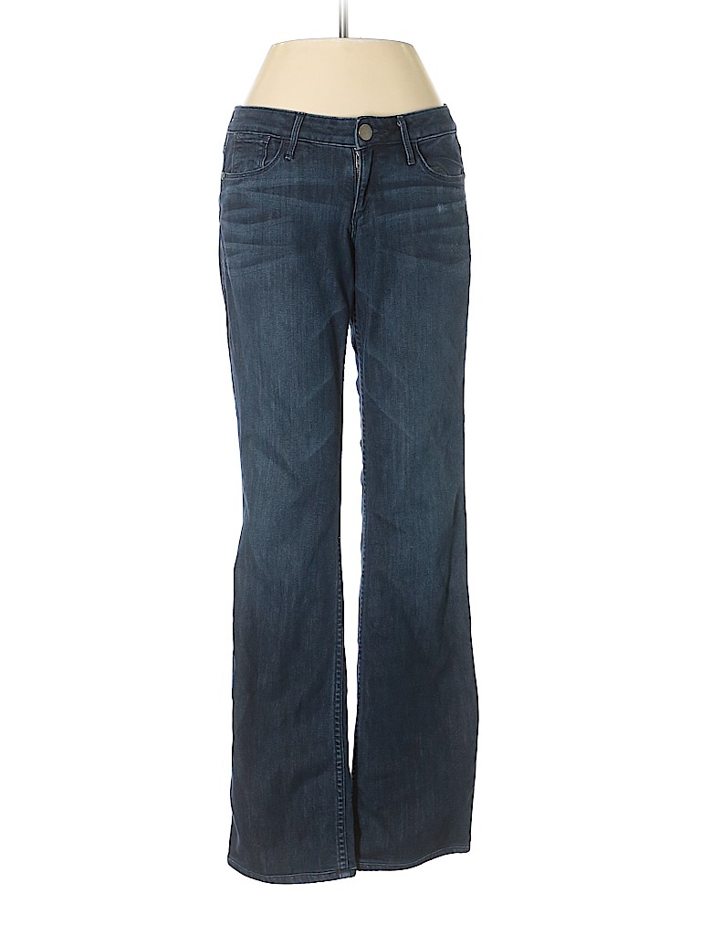 - Blue, low rise waist