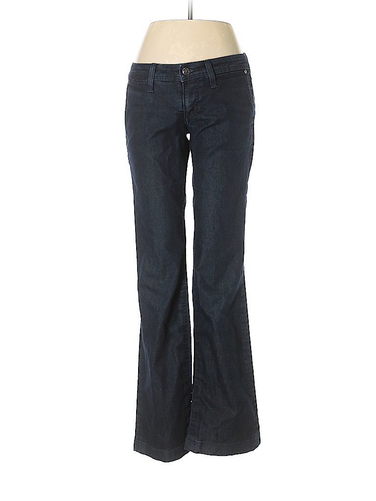 - Blue, low rise waist