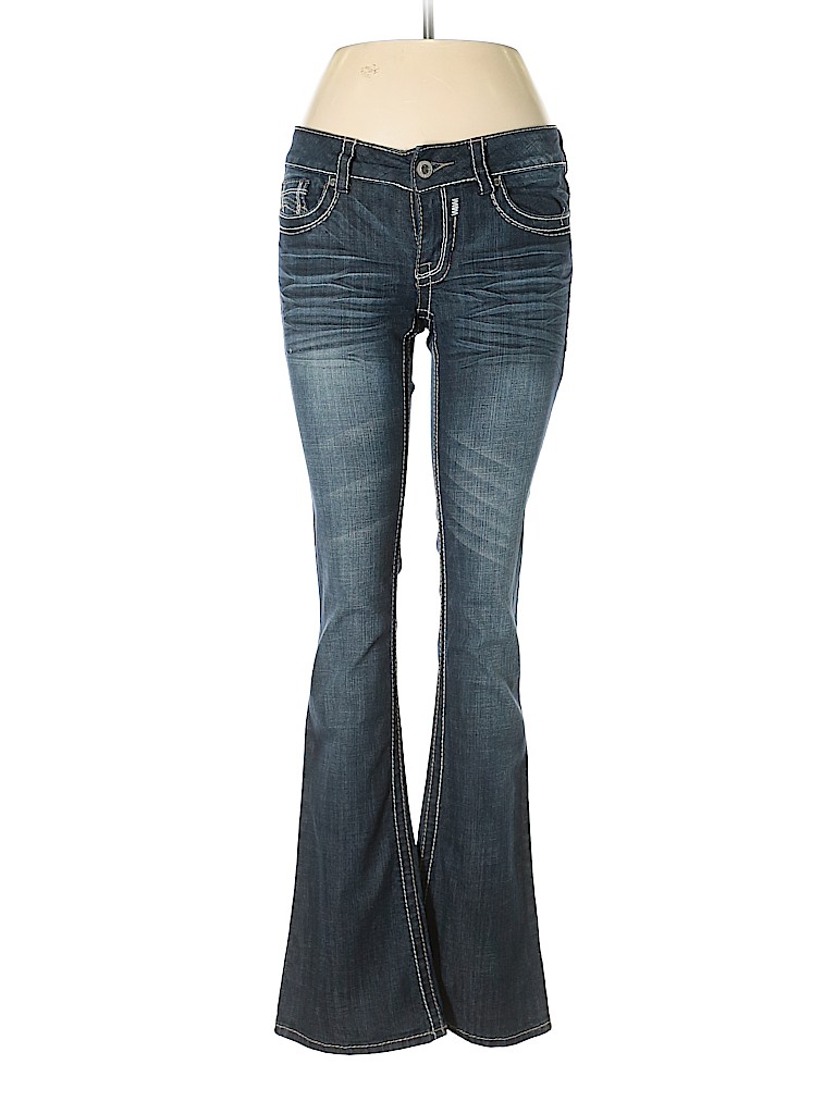 - Blue, low rise waist