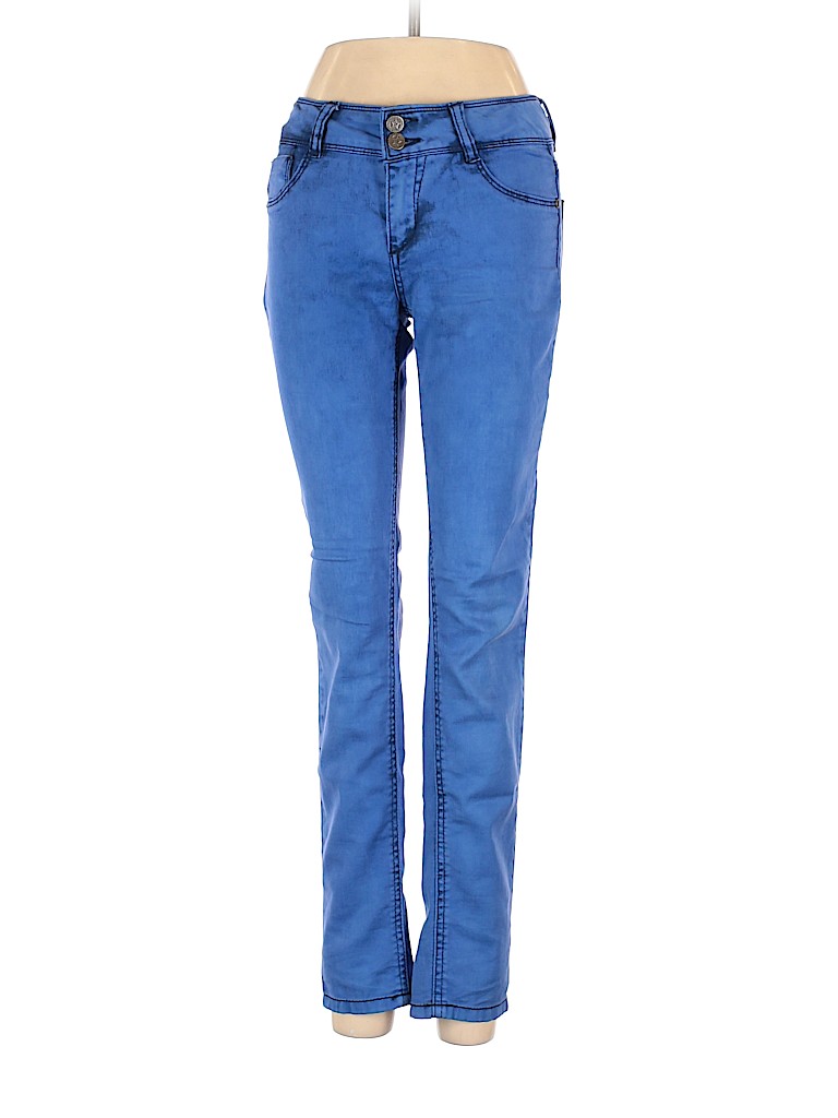 - Blue, low rise waist