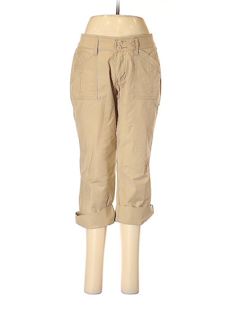 - Tan, mid rise waist