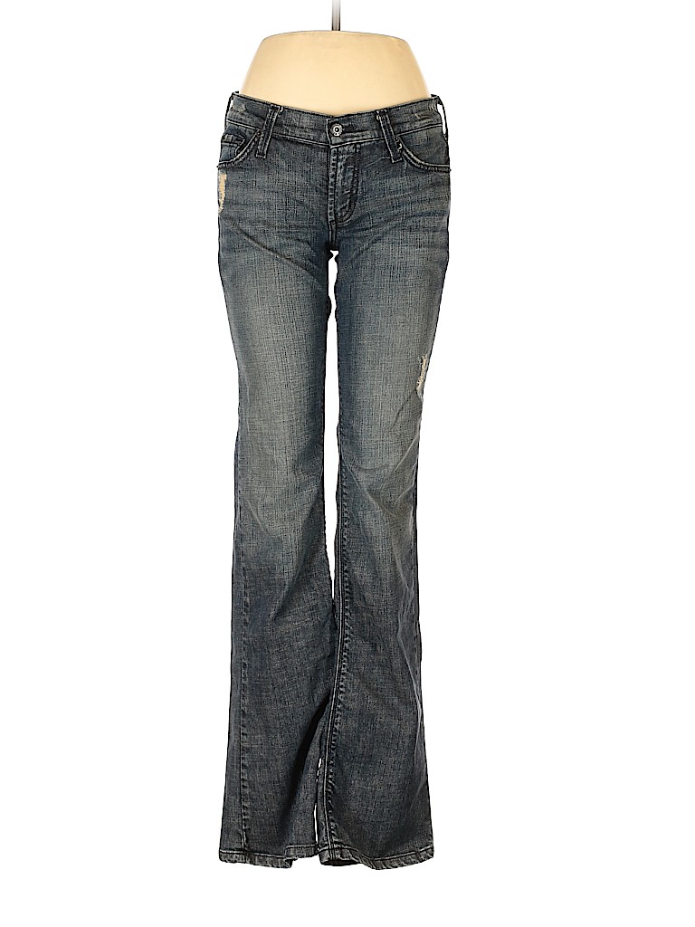 - Blue, low rise waist
