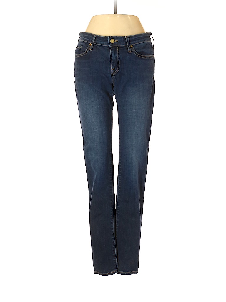 - Blue, low rise waist