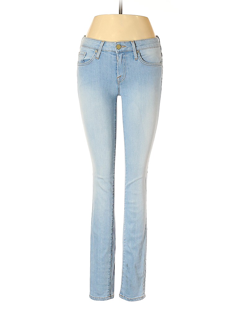 - Blue, low rise waist