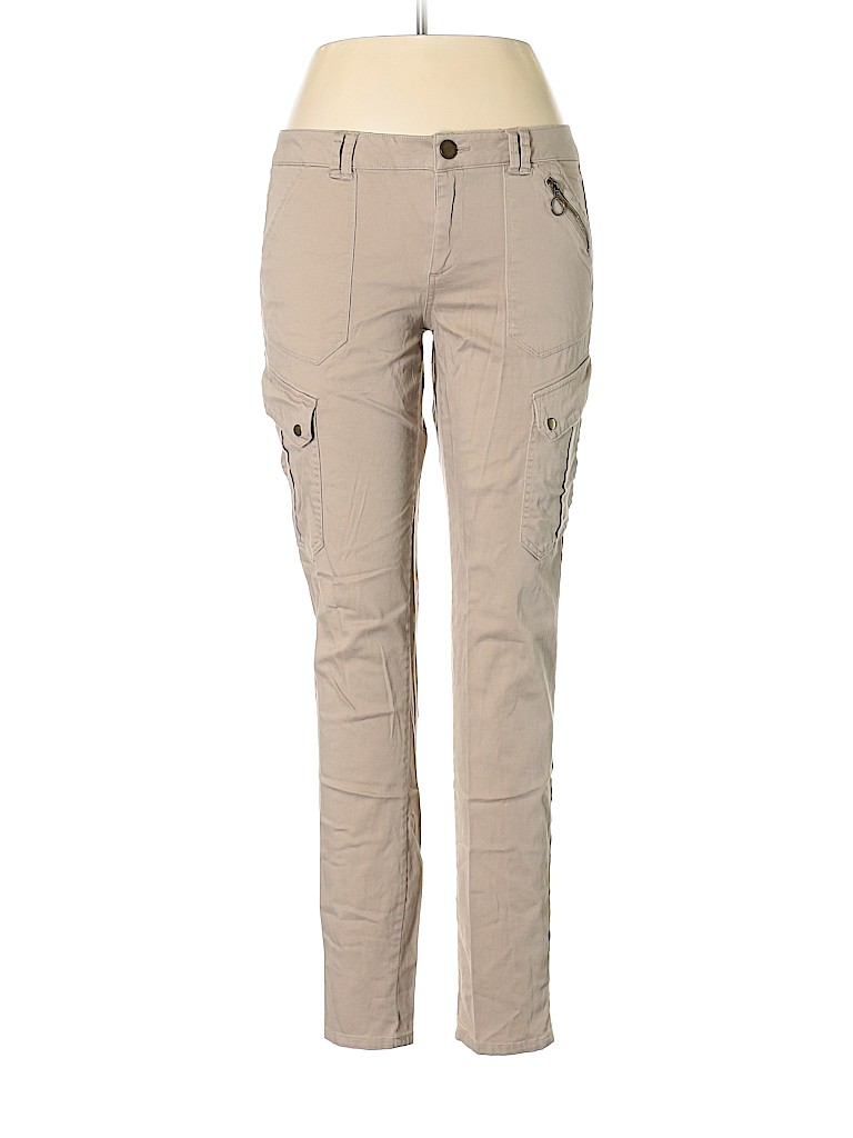 - Tan, mid rise waist