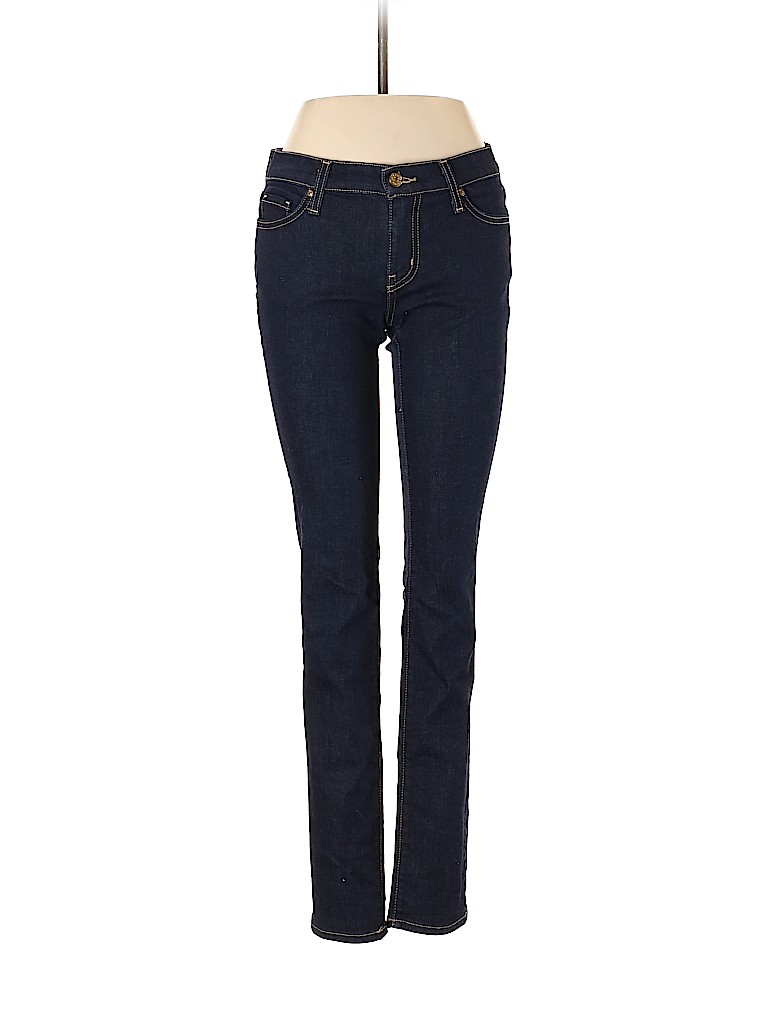 - Solid, dark blue, dark wash, skinny leg cut, mid rise waist