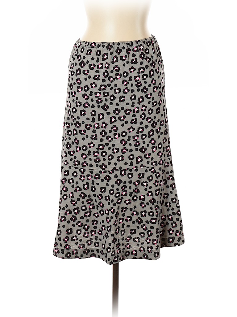 - A-line silhouette, animal print, gray, midi-calf length