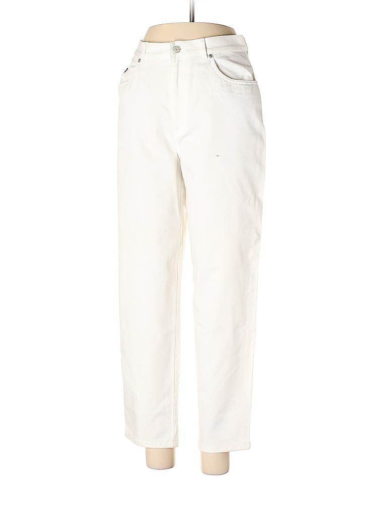 - White, mid rise waist