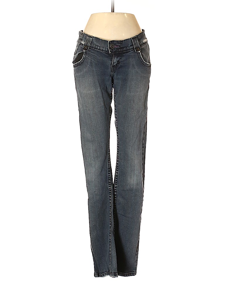 - Blue, low rise waist