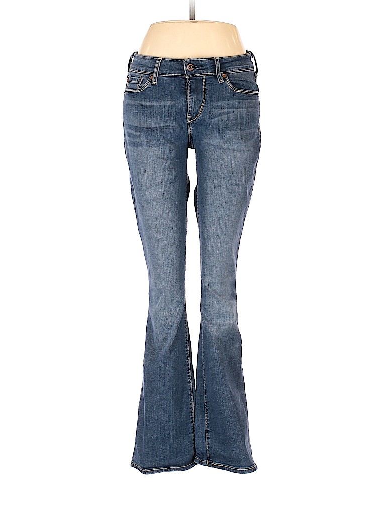 - Blue, low rise waist