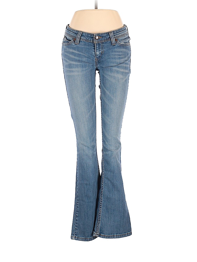- Blue, low rise waist