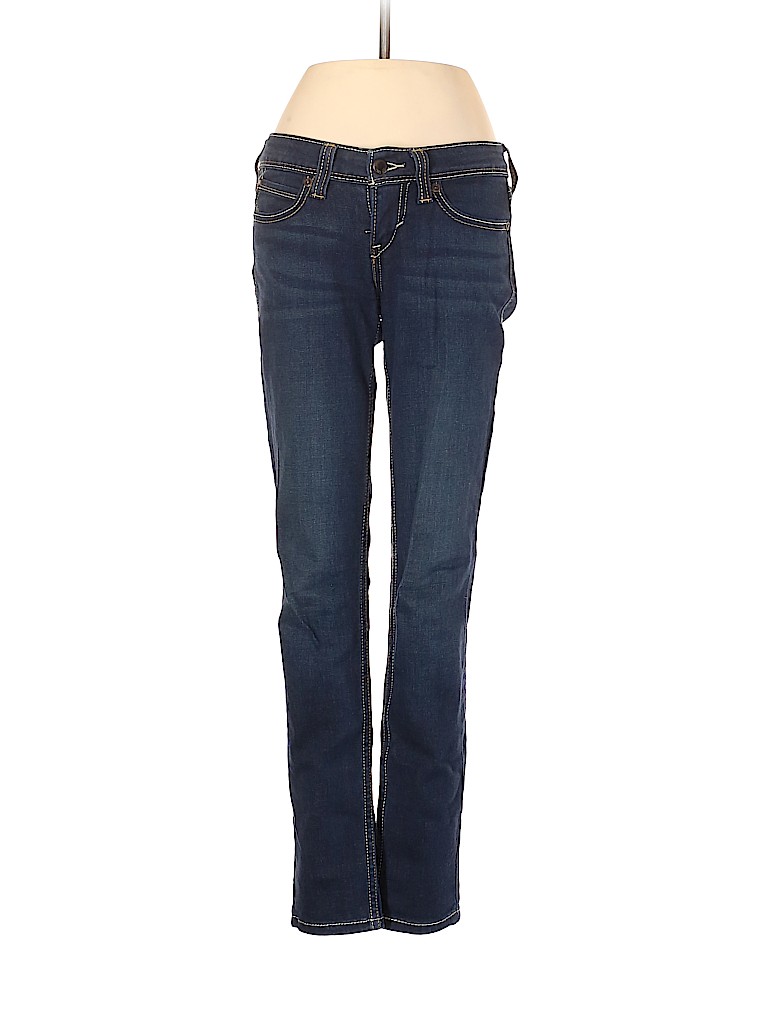- Blue, low rise waist