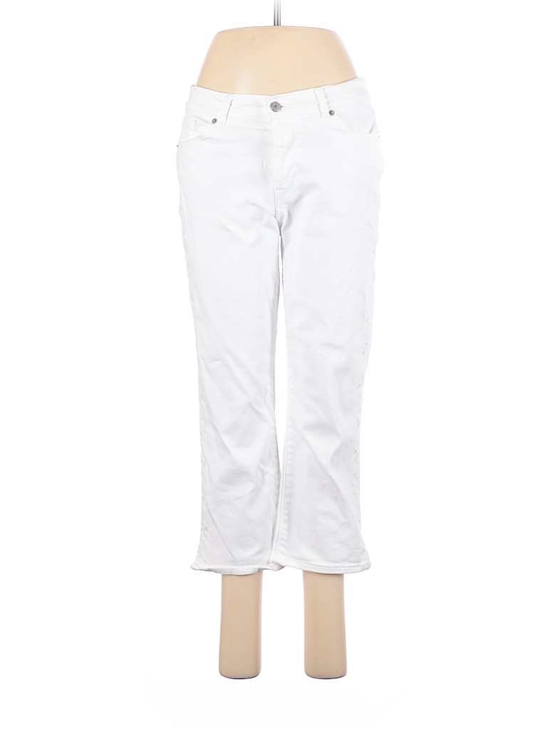 - White, mid rise waist