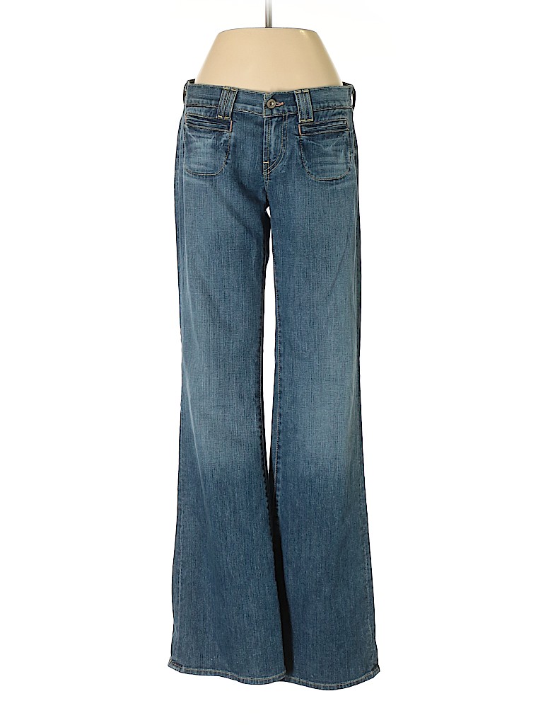 - Blue, low rise waist