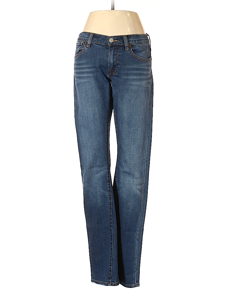 - Blue, low rise waist