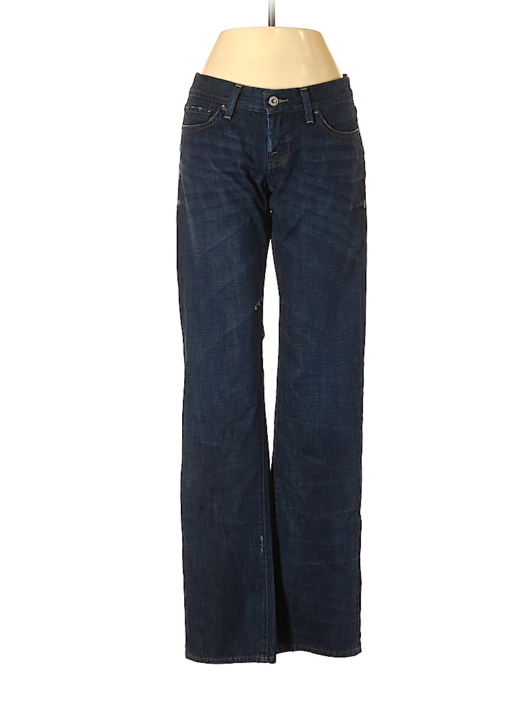 - Blue, low rise waist
