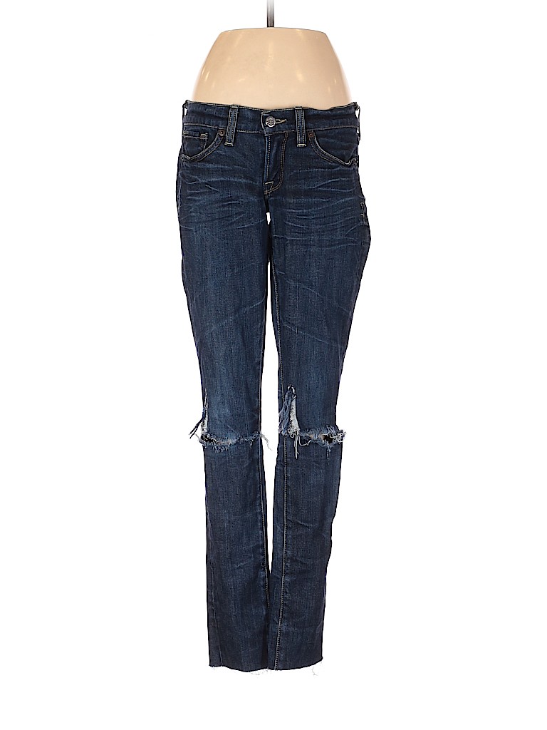 - Blue, low rise waist