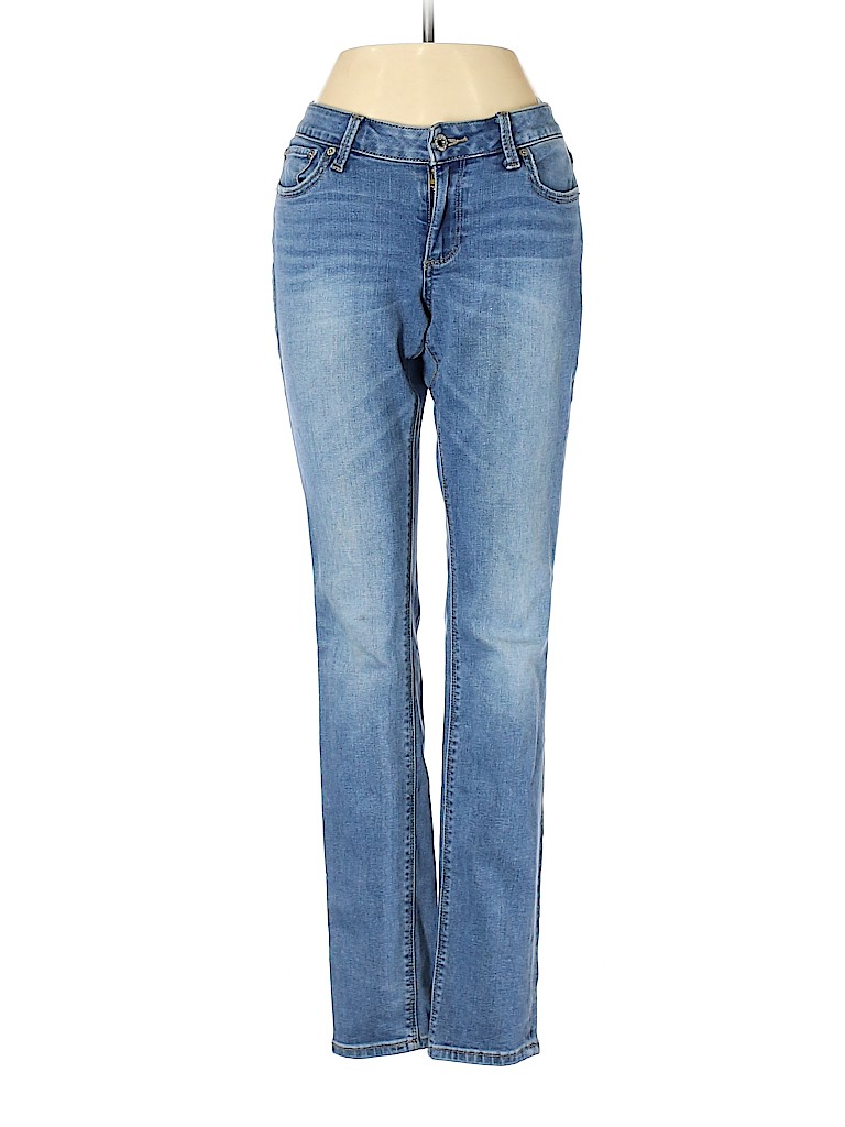 - Blue, low rise waist