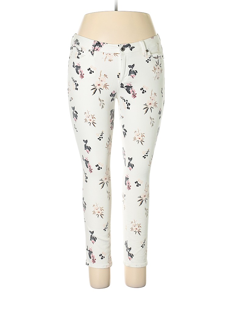 - White, mid rise waist