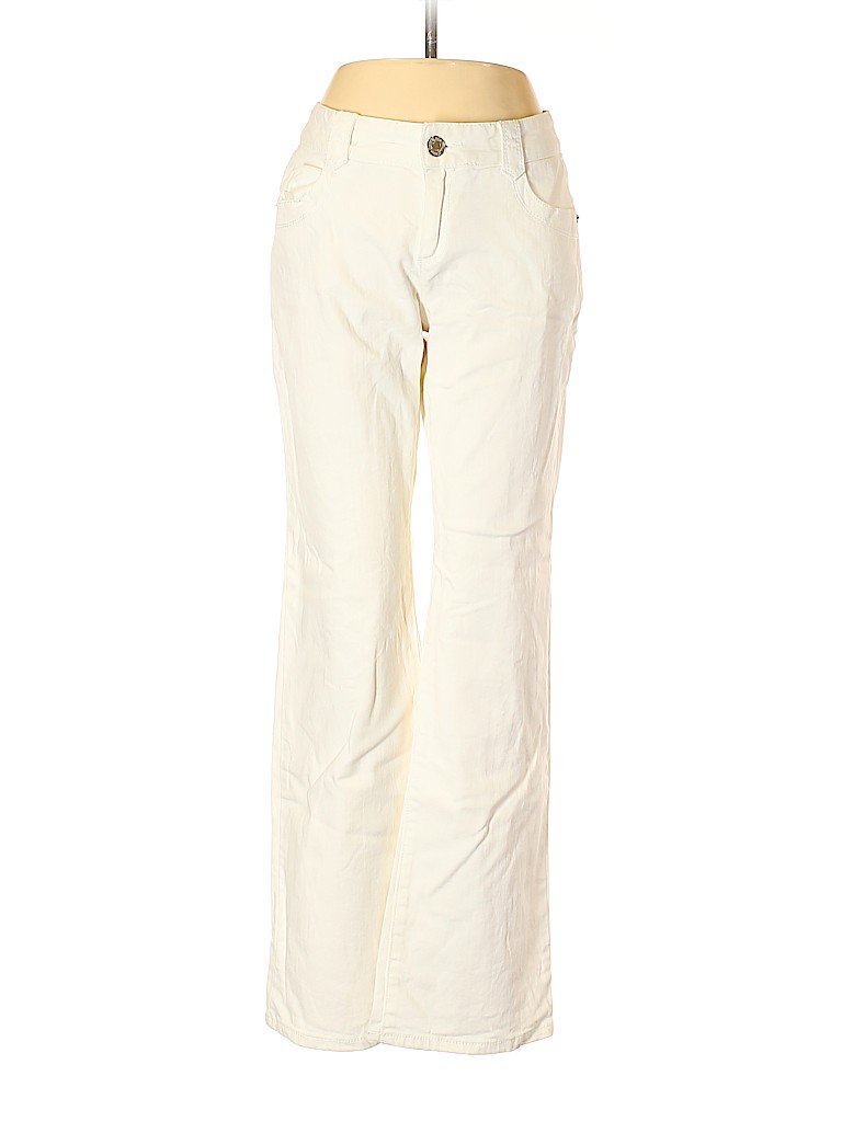 - White, mid rise waist