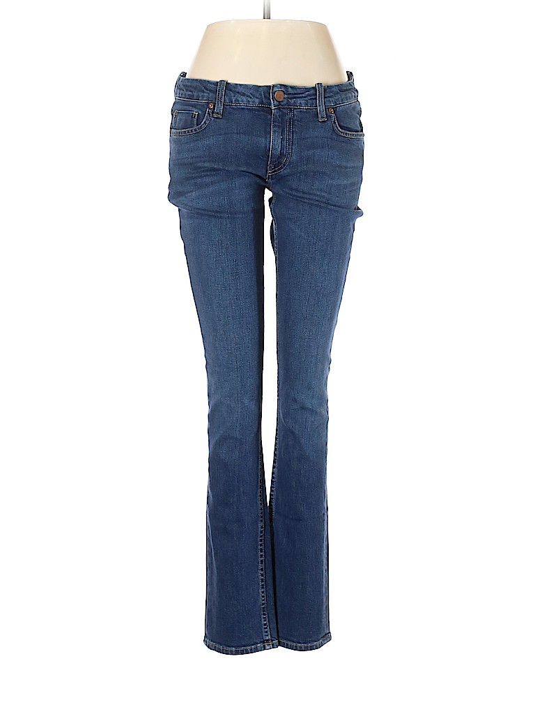 - Blue, low rise waist