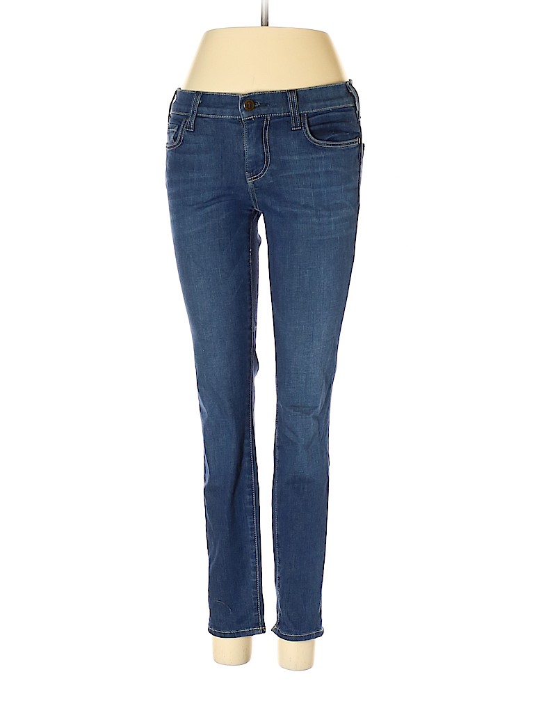 - Blue, low rise waist
