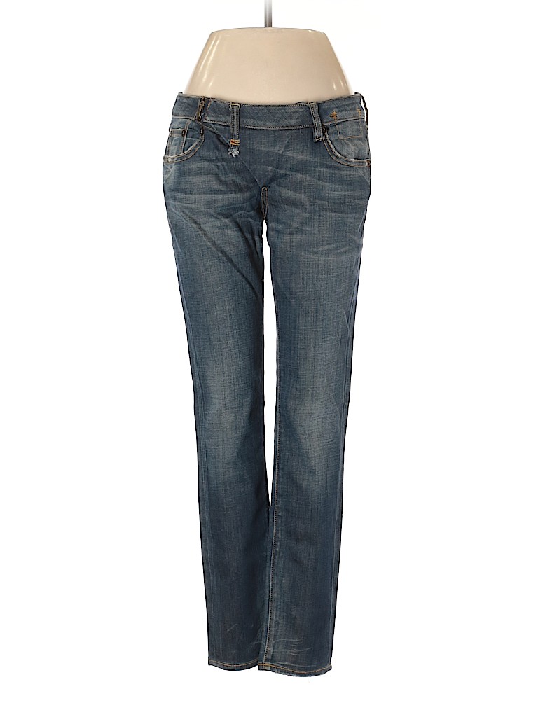 - Blue, low rise waist