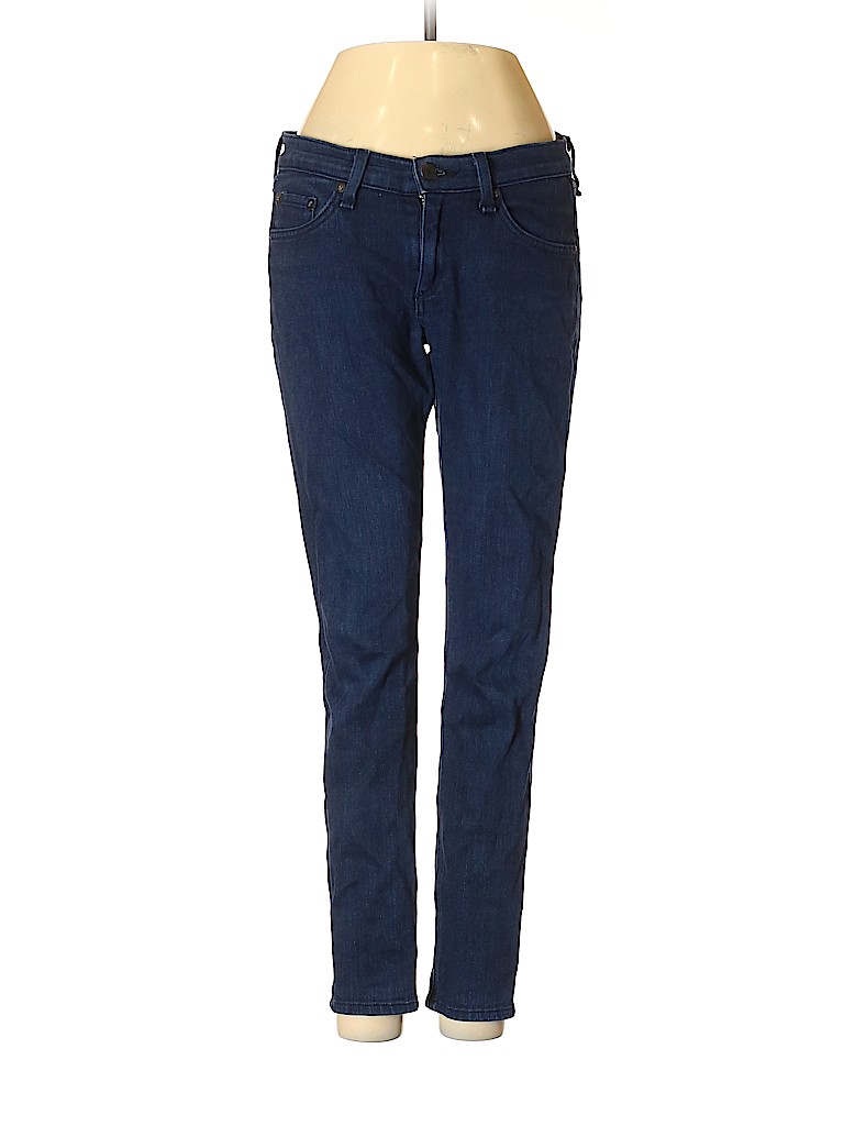 - Blue, low rise waist